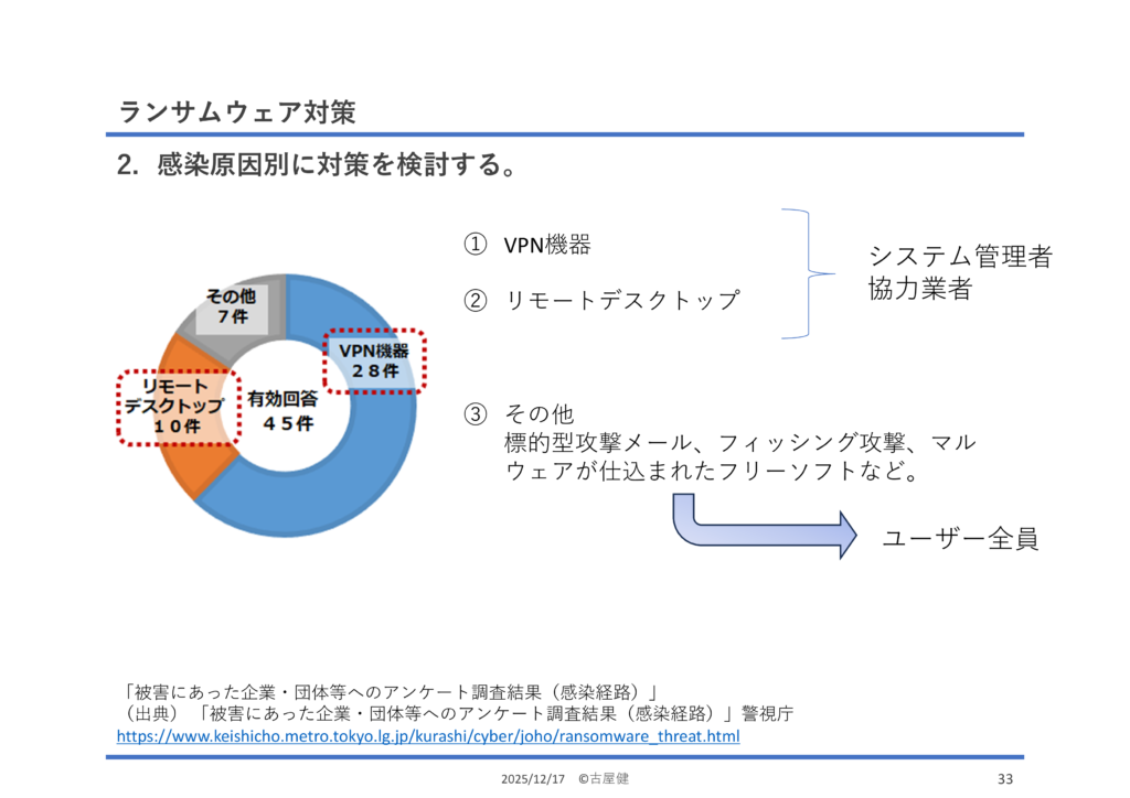 ②感染原因別の対策(VPN、リモートデスクトップ、標的型攻撃メール)